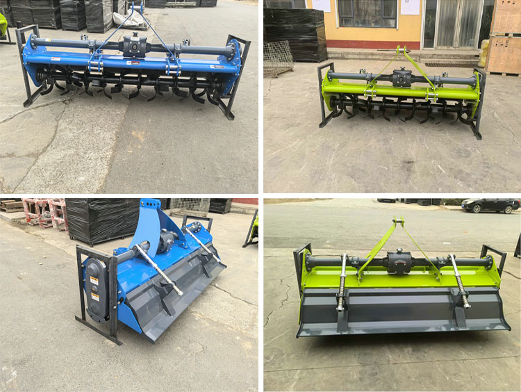 O leme rotativo de 3 pontos é composto de muitas lâminas afiadas, que são alimentadas pelo trator. Essas lâminas podem cortar o resíduo de culturas anteriores e romper o solo e também podem ser ajustadas de acordo com requisitos específicos para a profundidade do cultivo.