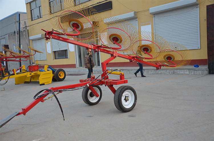 Os ancinhos de feno das rodas não são apenas adequados para a coleção e classificação de feno e palha, mas também para a limpeza de folhas caídas e ervas daninhas em pomares, gramados e outros lugares, o que melhora muito seu valor de aplicação. Seja uma fazenda grande ou uma pequena fazenda familiar, pode ser encontrada na cena.