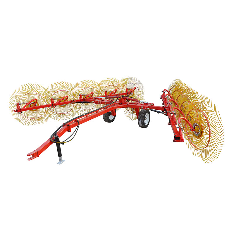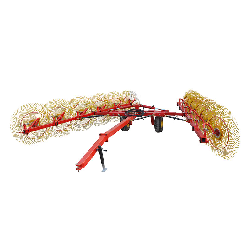 O ancinho de feno do ancinho da roda é adequado para pendurar na traseira dispositivo de suspensão de três pontos do trator, e a parte de trabalho é uma placa de dedos com dentes. A máquina é transmitida à última placa em ordem, para fazer com que o Hey seja uma barra de palha solta e ventilada. Alterar o ângulo da placa do dedo pode ajustar a largura da barra de palha.